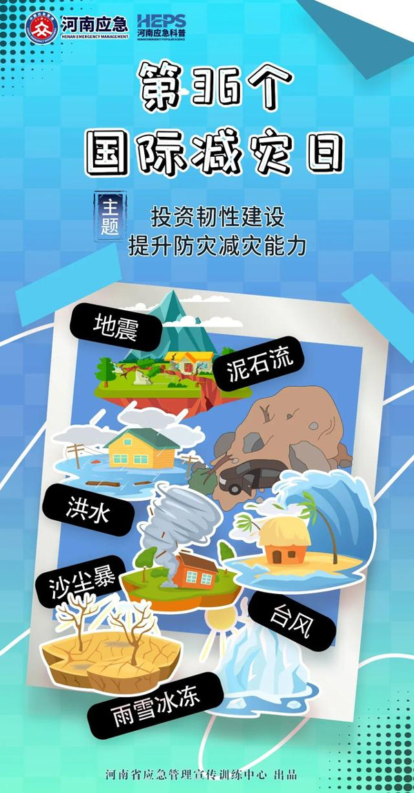 今年的 10 月 13 日是第 36 個國際減災日,今年的主題是 “投資韌性建設,提升防災減災能力”。我們無法預測災難何時發(fā)生,但可以提前學習防災減災知識,增強應對災害的能力,為自己和家人的安全多上一道 “保險”。