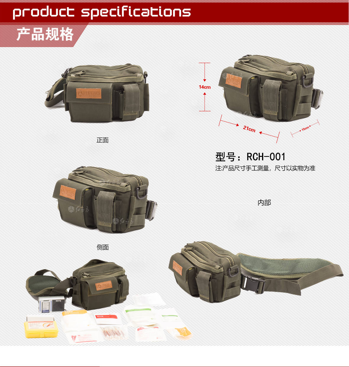 | 型號:RCH-001戶外應急包 | 外包材質:滌綸 | 顏色:軍綠 | ||||||